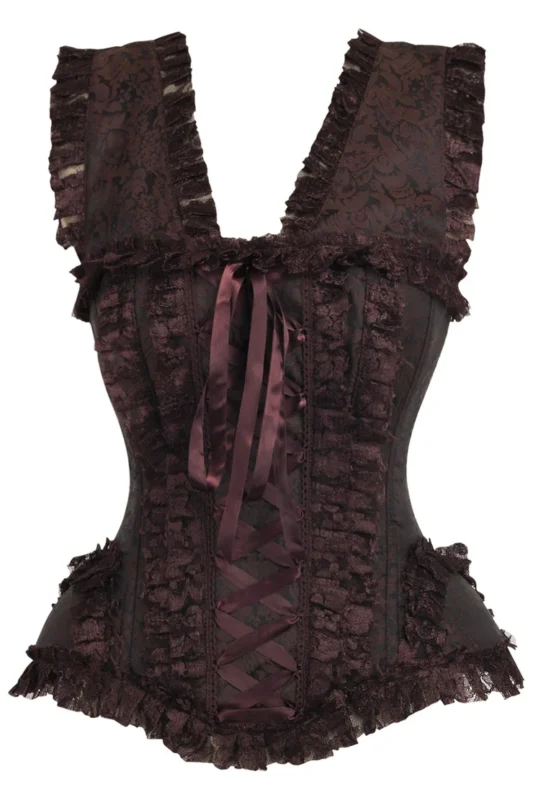 Steampunk Brown Swirl Brocade & Lace Steel Boned Gothic Corset