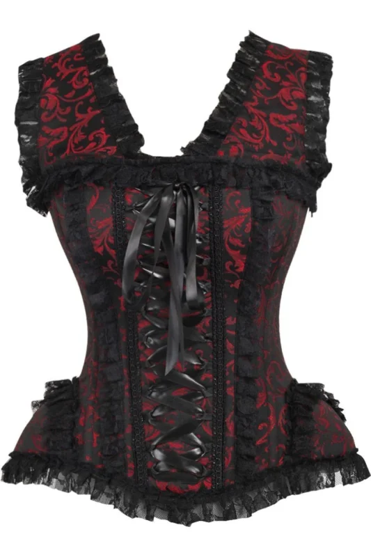 Red/Black Swirl Brocade & Lace Steel Boned Gothic Corset w/Cap Sleeves