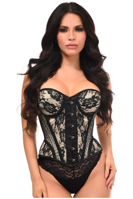 Nude w/Black Lace Steel Boned Underwire Bustier Gothic Corset