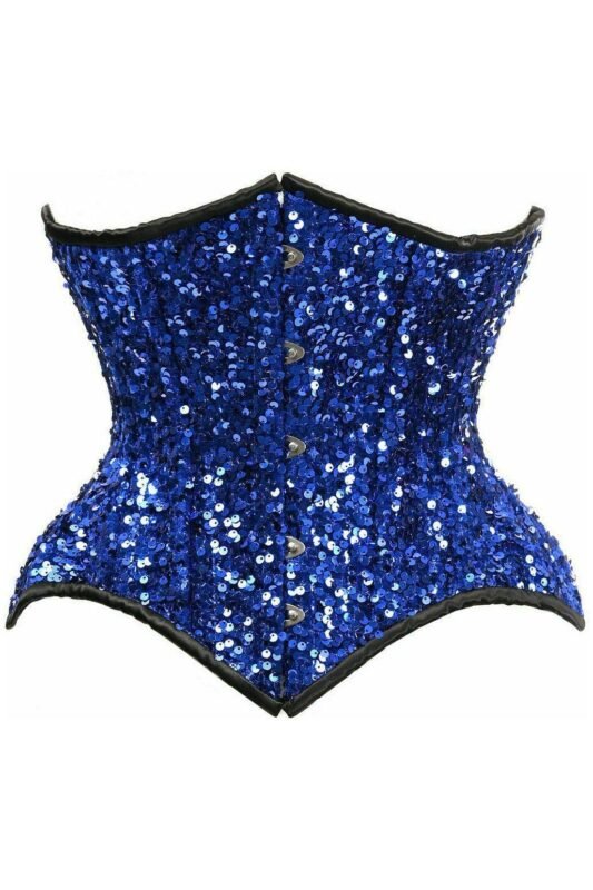 Blue Sequin Curvy Cut Waist Cincher Curviest Half Corset