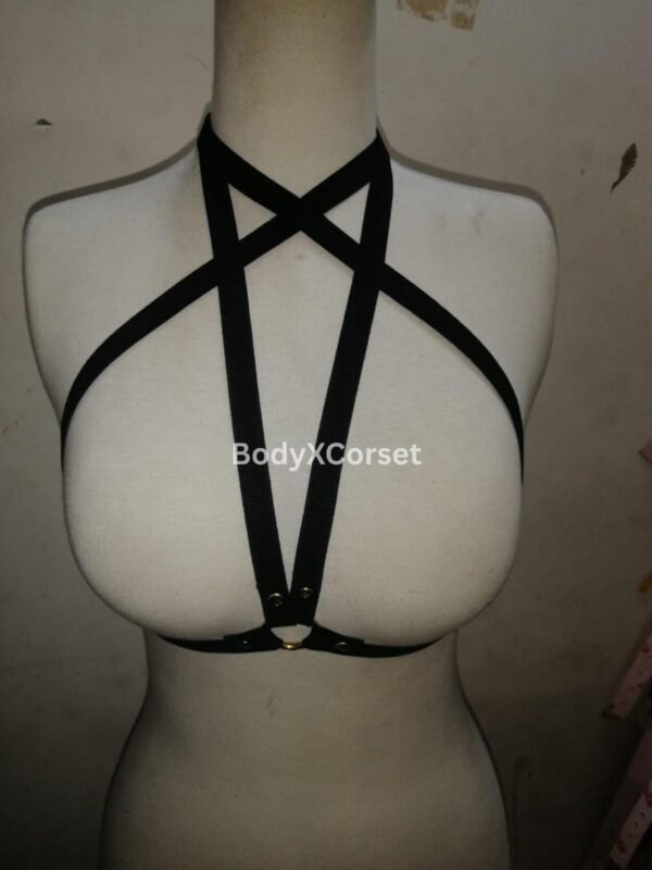 Gothic Black Strappy Harness Bra | Adjustable Elastic Cage Bralette | Festival Rave Lingerie | BDSM Transparent Bra Body Harness Top Costume