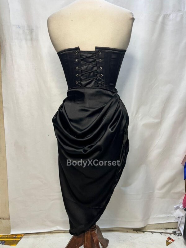 Gothic Black Satin Corset Dress: Victorian Bustier Gown, Ruched Skirt Prom Dress