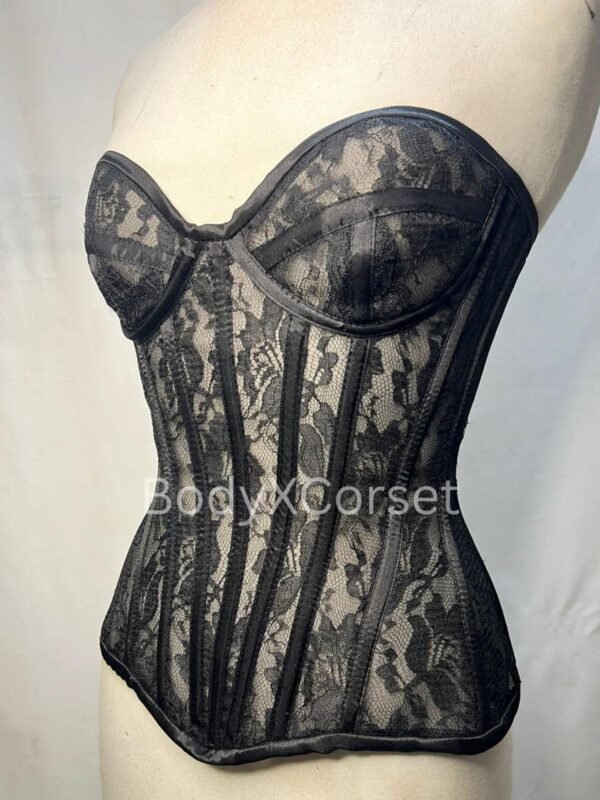 Gothic Black Lace Corset Top Sheer Strapless Bustier Lingerie Mesh Waist Cincher for Women Burlesque Festival Corset Outfit Fashion Corset
