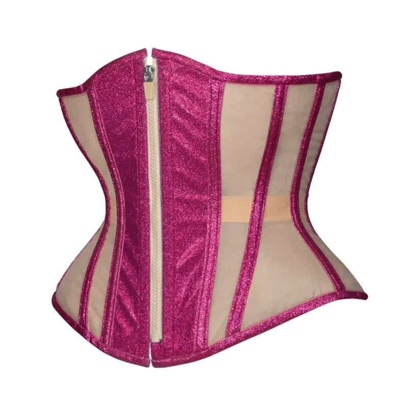 Curvy Extreme Corset Pink Tourmaline Glitter Mesh Regular Corset