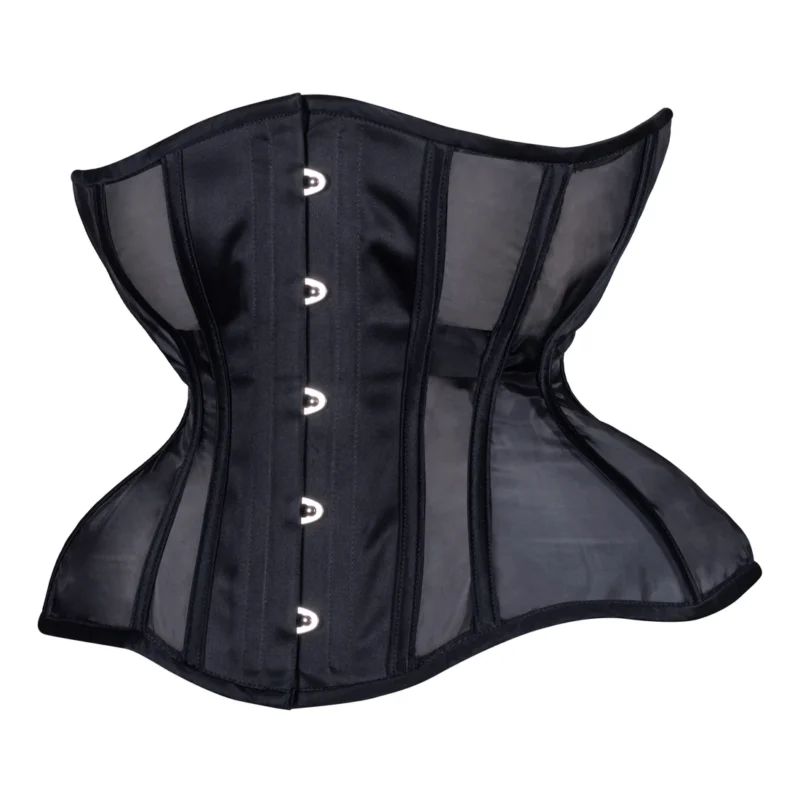 Black Mesh Steel Boned Curvy Fronted Underbust Corset