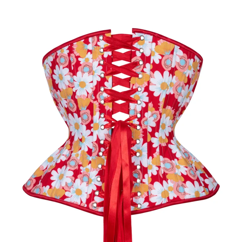 Curvy Extreme Corset Vintage Daisies in Red Regular Corset
