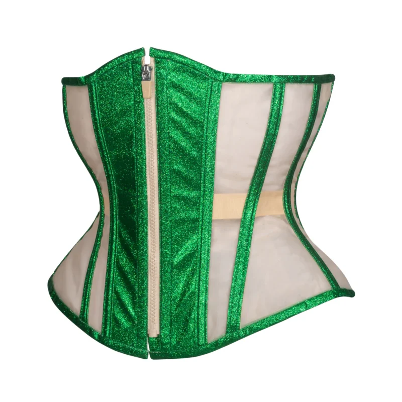 Curvy Extreme Corset Emerald Glitter Mesh Hourglass Regular Corset