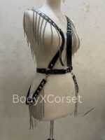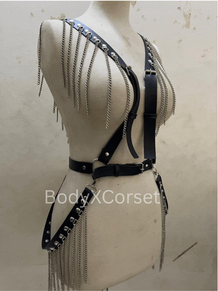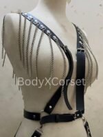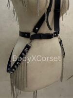 Channel your inner rebel with this fierce Black Leather Chain Bralette Harness—designed to command attention, shape your look, and give off serious confidence with every step. Whether you’re headed to a rave, gearing up for Halloween, or layering up for a bold festival outfit, this piece is all about attitude and edge.