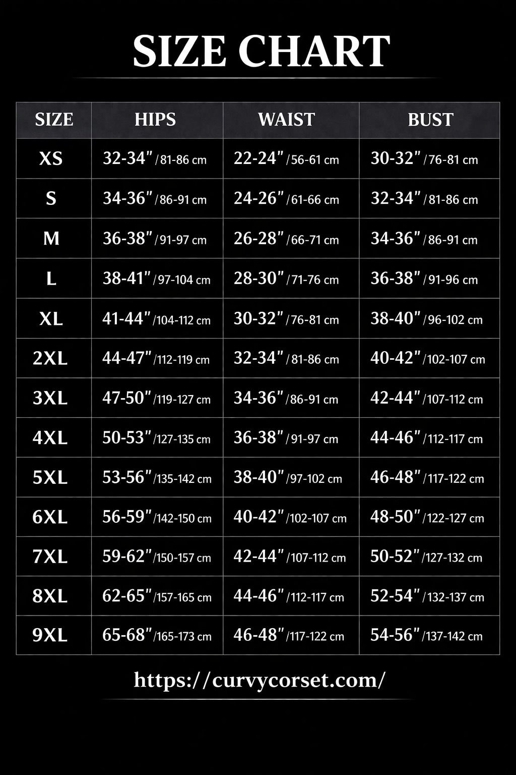 • Size guide: Please buy a corset 4 inch smaller than your natural waist for best fitting