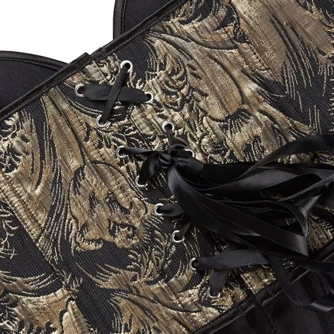 • Design: Black & Gold Floral Jacquard Corset with Vintage Tapestry Pattern