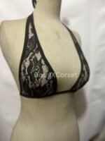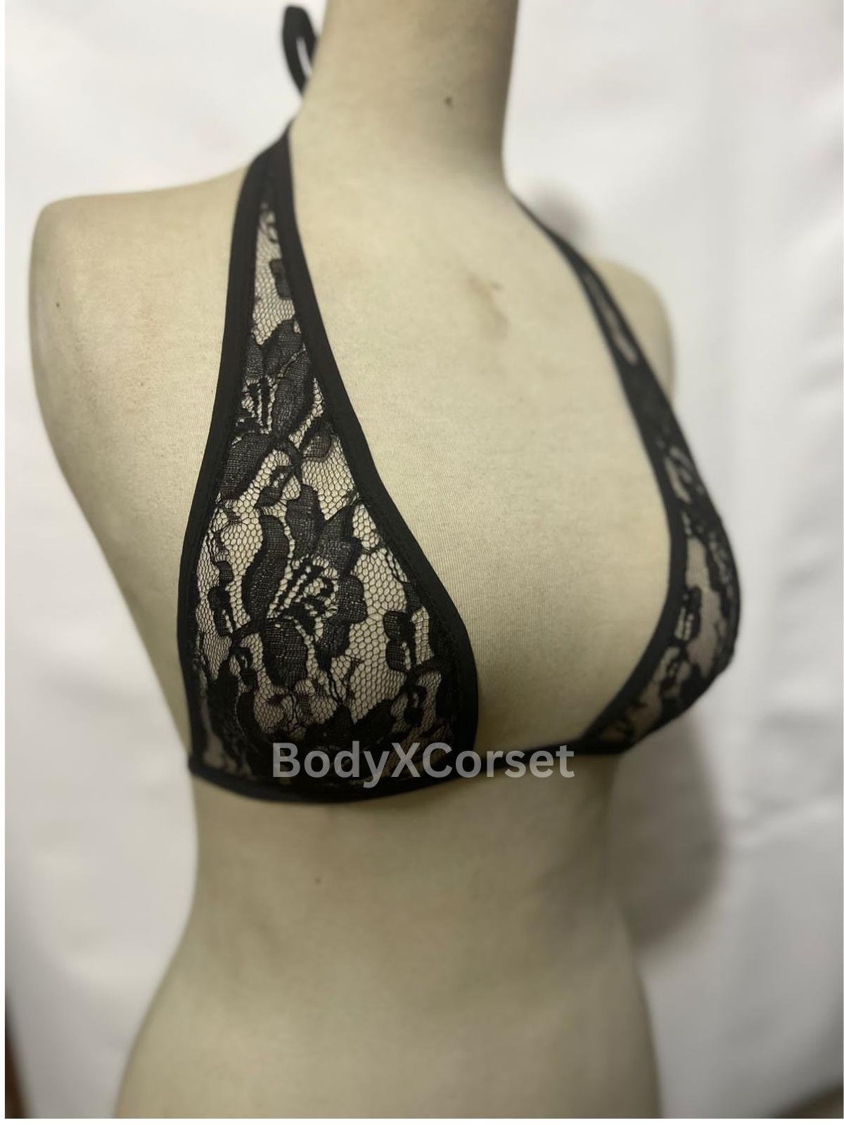 black lace bralette, sheer halter top, triangle lace bra, sexy lingerie top, rave bralette, festival bra top, mesh bralette, handmade lingerie, tie back halter, sheer triangle bra, lingerie Etsy, gothic bralette, romantic lace top, see-through bralette, BodyX Corset