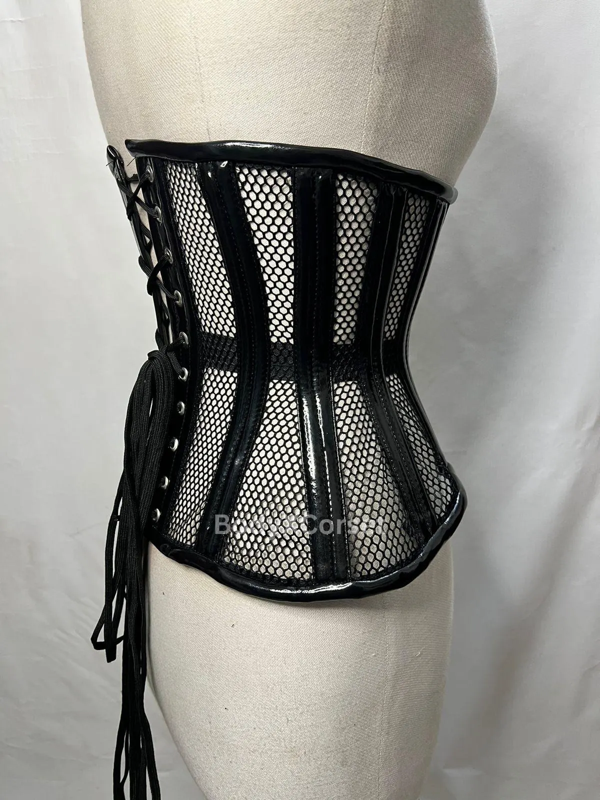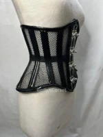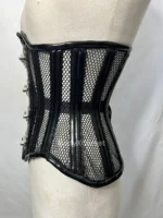 🔥 Striking Gothic Underbust Corset – Perfect for alternative fashion lovers, this black mesh & PVC waist cincher brings dramatic structure to your gothic, punk, steampunk, or fetish outfit.