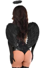 - Complete Set: Includes corset, black satin gloves, black feather wings, and black halo.