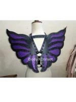 Elevate Your Fantasy Look with Our Black and Purple Leather Winged Shoulder Harness