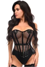 Delve into the specifics of the Top Drawer Black Fishnet w/Patent Steel Boned Overbust Corset to understand its craftsmanship and performance: