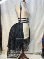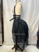 Gothic Leather Harness Corset with Black Lace Bustle Skirt