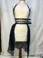 🔥 Bold Gothic Design – A fierce fusion of leather harness and flowing lace skirt for alternative, dark fashion lovers.