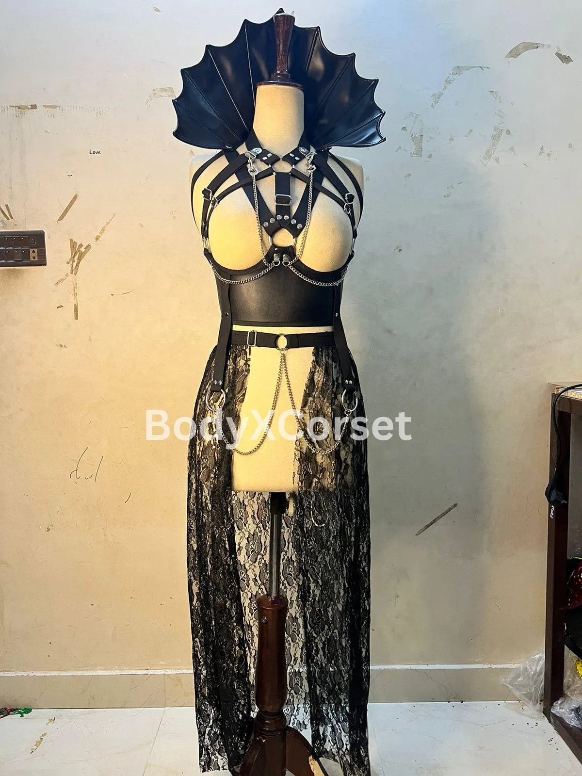 This handmade lingerie costume is the ultimate combination of edgy and elegant, offering a flattering fit that enhances your curves. Adjustable straps and durable hardware ensure both comfort and support.