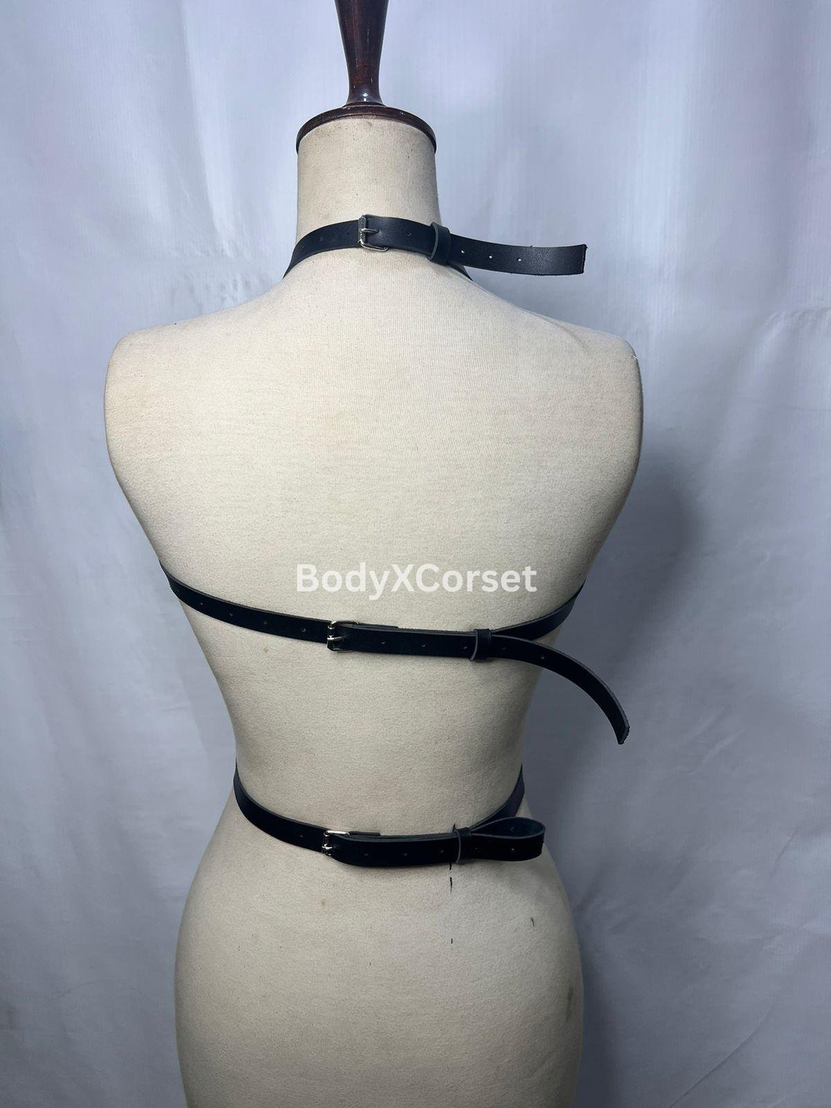 Handmade Faux Leather Body Harness: Gothic Festival Cage Bra