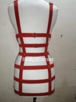 Handmade Red Body Harness Lingerie – Adjustable Strappy Cage Bra Belt, Festival Rave Harness, Gothic Bondage Lingerie, Full Body Harness