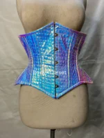 Holographic Crocodile Waist Cincher Corset | Iridescent Steel Boned Corset | Shiny Festival Corset for Women | Goth Cyberpunk Waist Trainer | Handmade Cosplay Corset