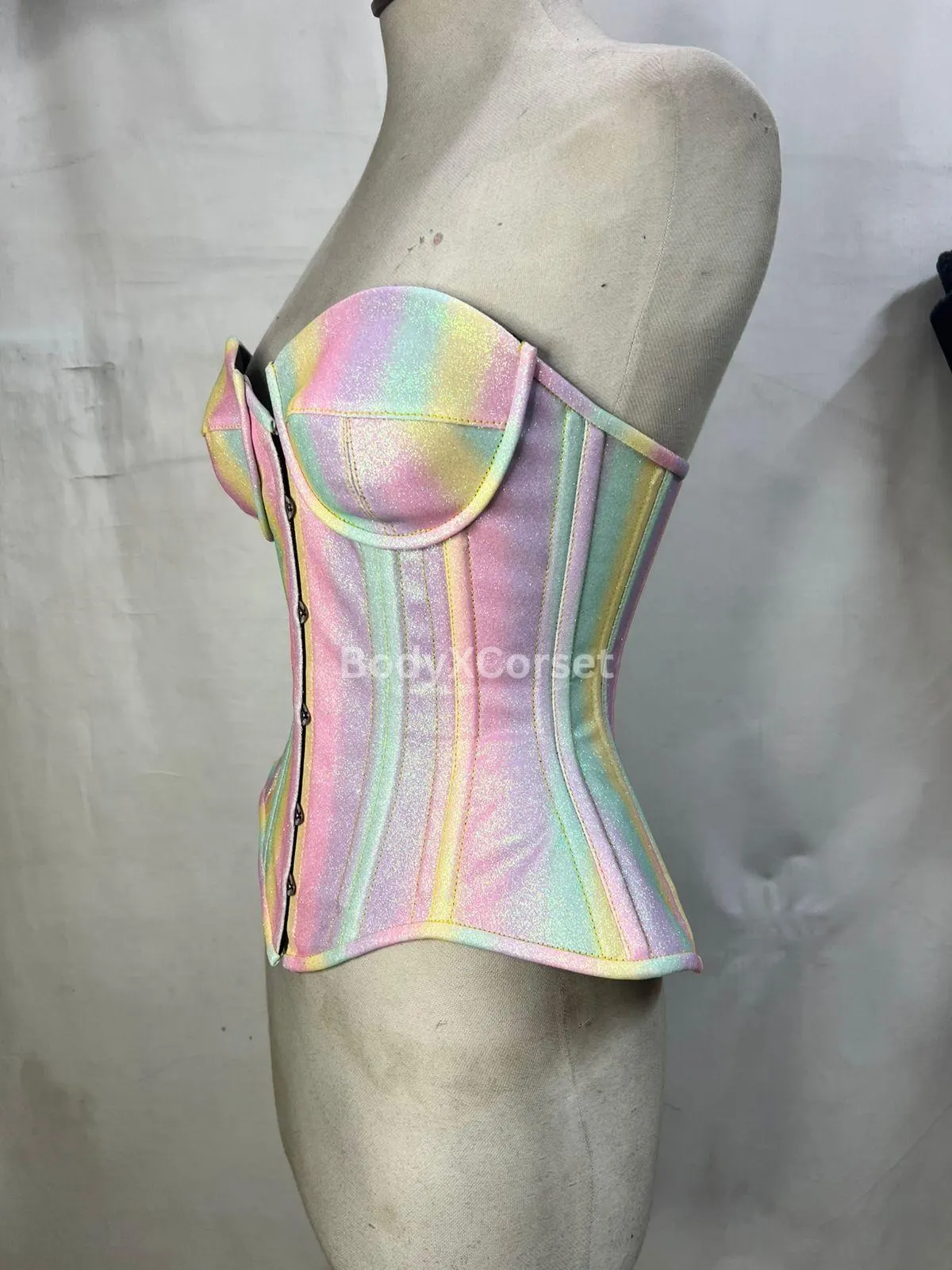 Dare to dazzle in this enchanting Pastel Rainbow Corset Top, crafted to flatter your curves and turn heads at every angle. This strapless glitter corset is a fusion of fairycore fantasy, festival flair, and vintage glamour — making it the perfect statement piece for any bold fashionista. Whether you’re hitting a rave, cosplay event, or just love to stand out, this corset has you covered — literally and beautifully.
