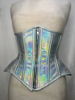 Holographic Corset Waist Trainer – Iridescent Snake Skin Overbust Corset – Festival Rave Corset Top – Gothic Cyberpunk Waist Cincher – Shiny Steel Boned Corset