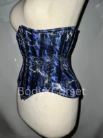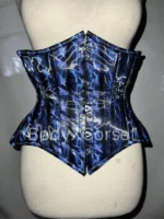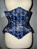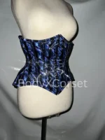 This holographic corset underbust waist trainer blends bold style, structured support, and comfort. Its shimmering navy blue fabric, steel boning, and adjustable fit help you look and feel confident at festivals, raves, or any bold event.