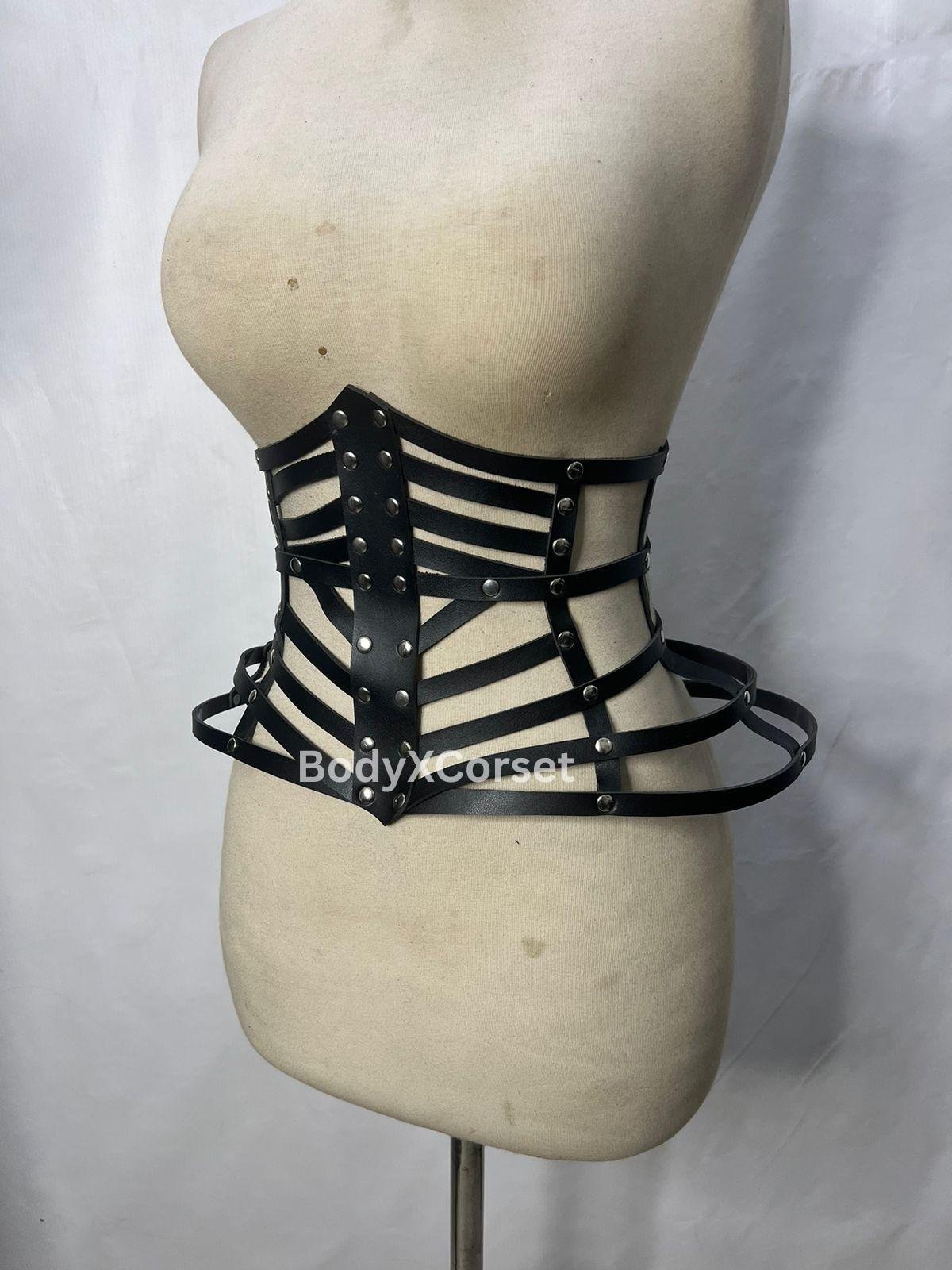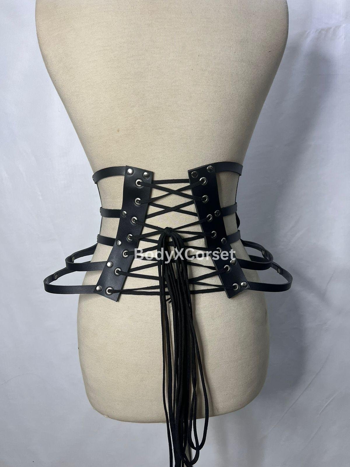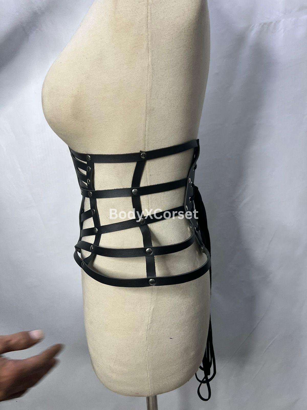 Multi-Strap Structure: Unique harness design with multiple leather straps adds a modern twist to traditional corsets.