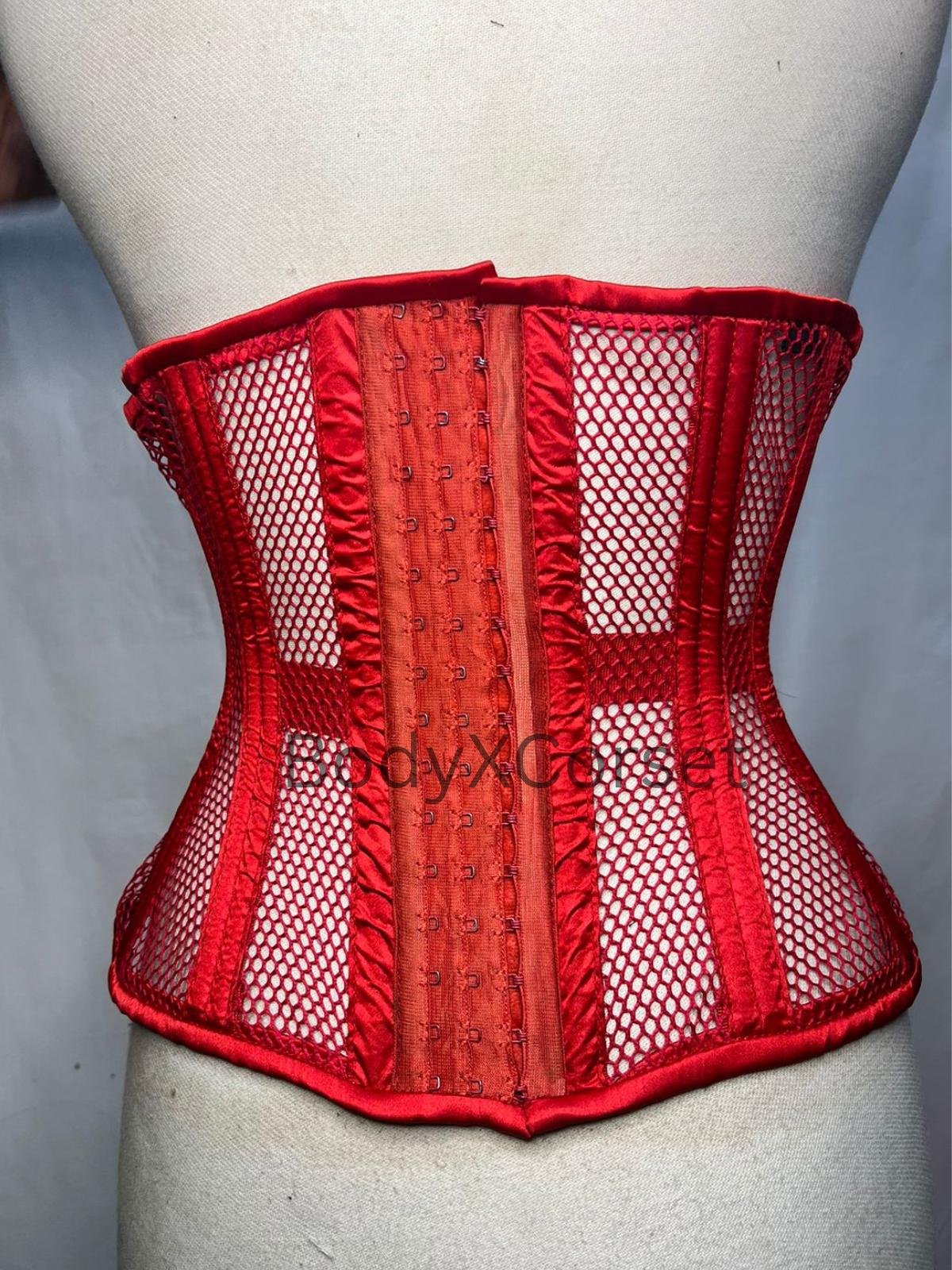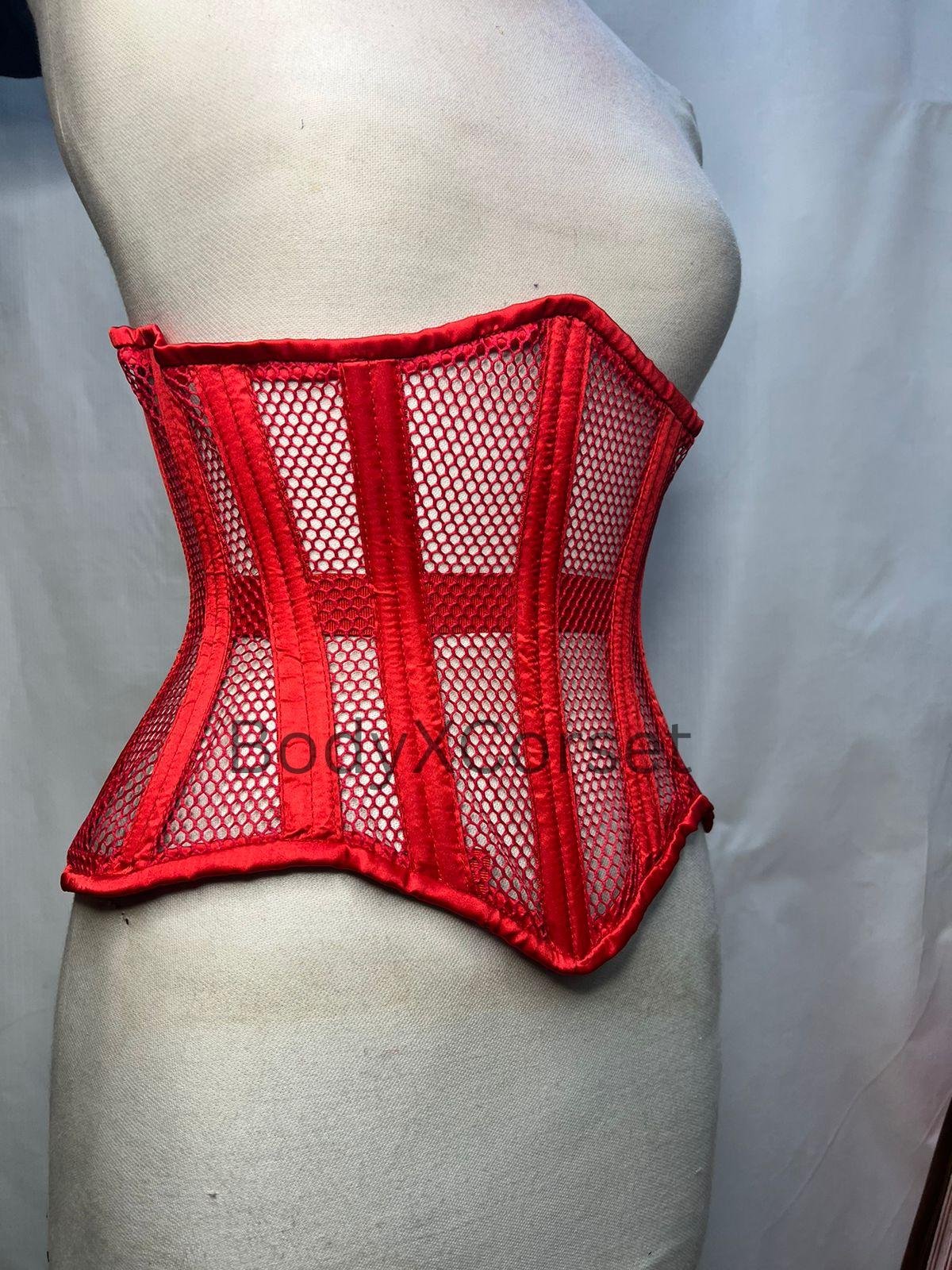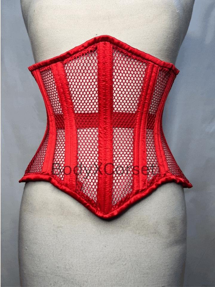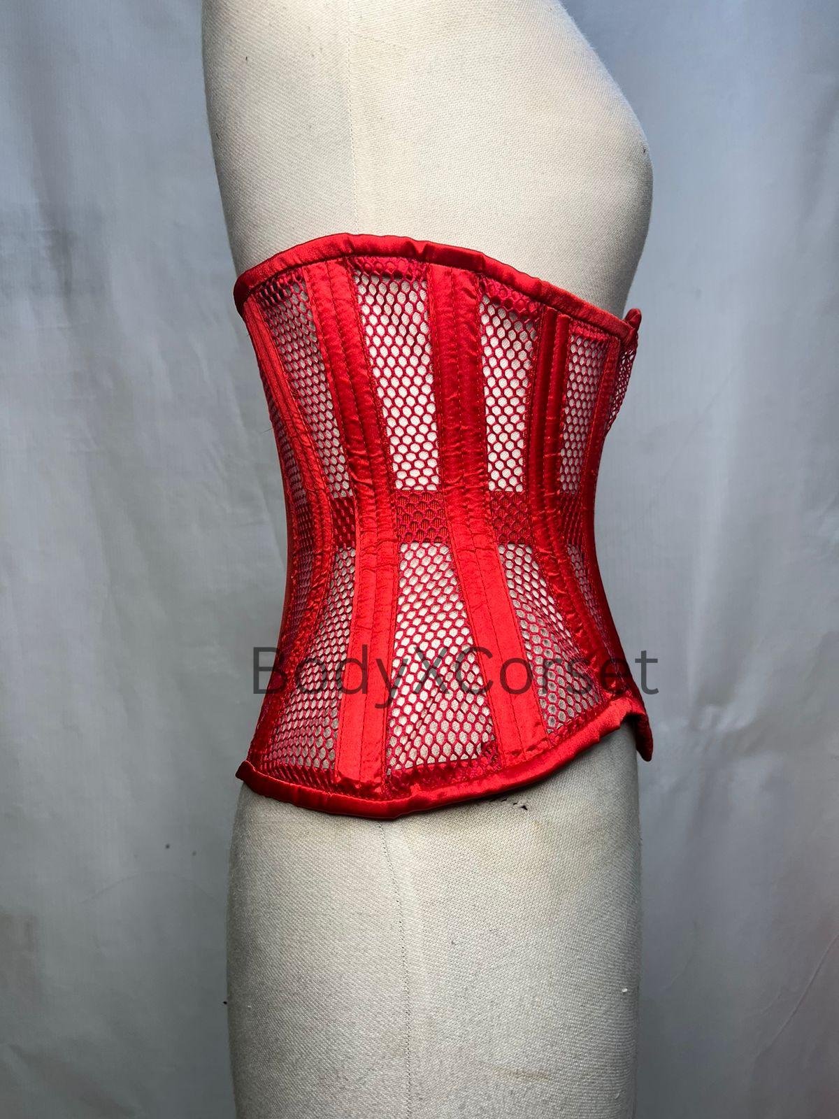 Sculpt your curves with this mesh waist trainer – a bold and breathable red underbust corset designed just for women. Made from durable fishnet mesh with strong steel boned support, this waist cincher is perfect for waist training, tummy shaping, or spicing up your festival, burlesque, or cosplay look. Lightweight yet firm, it laces up at the back for a flawless, customizable fit. A must-have corset for women who love sexy, edgy style.