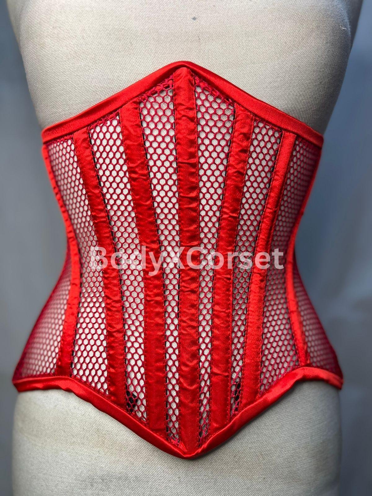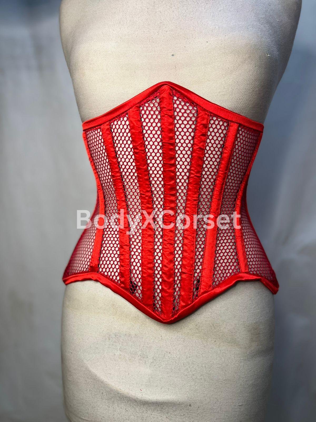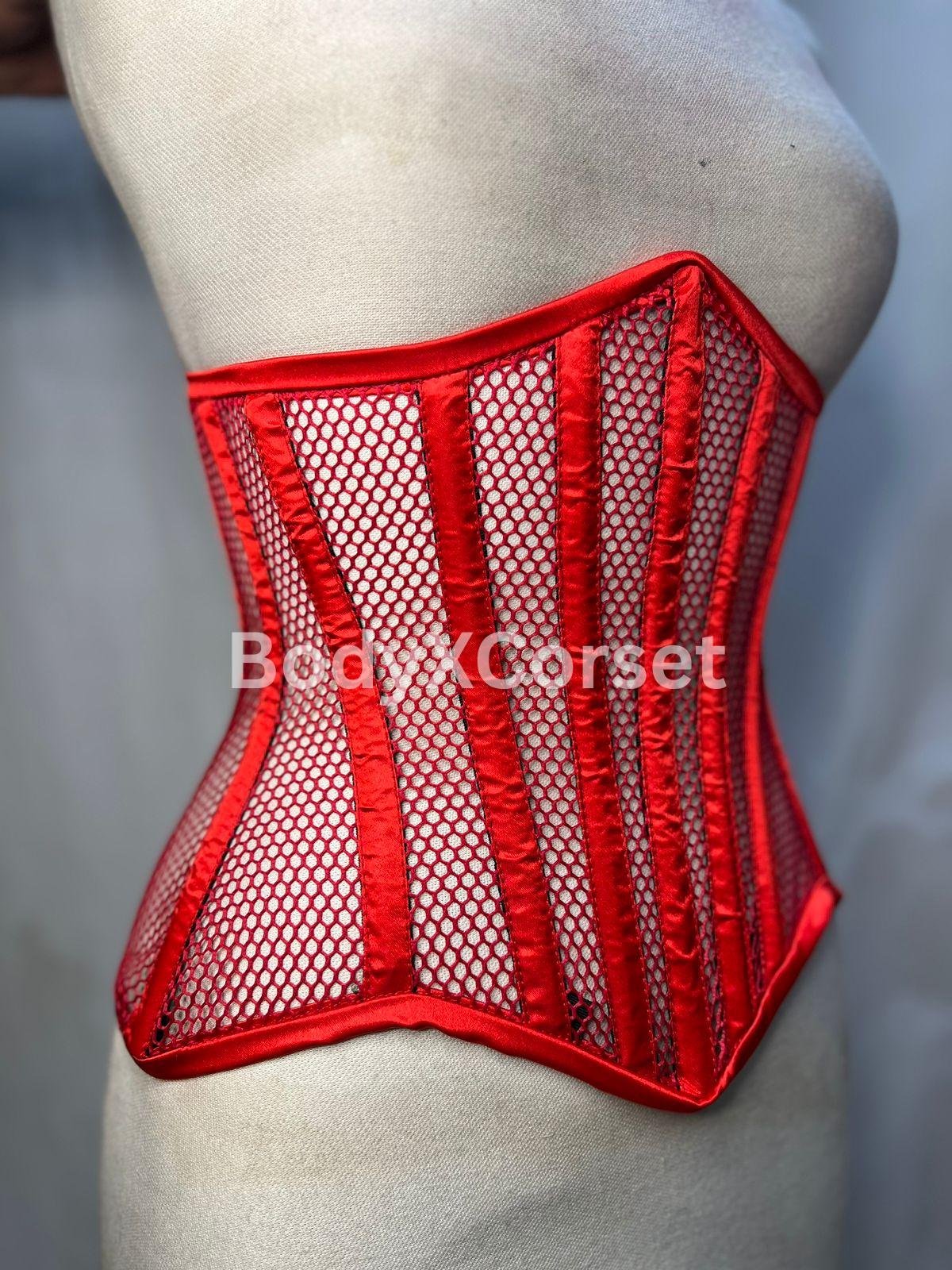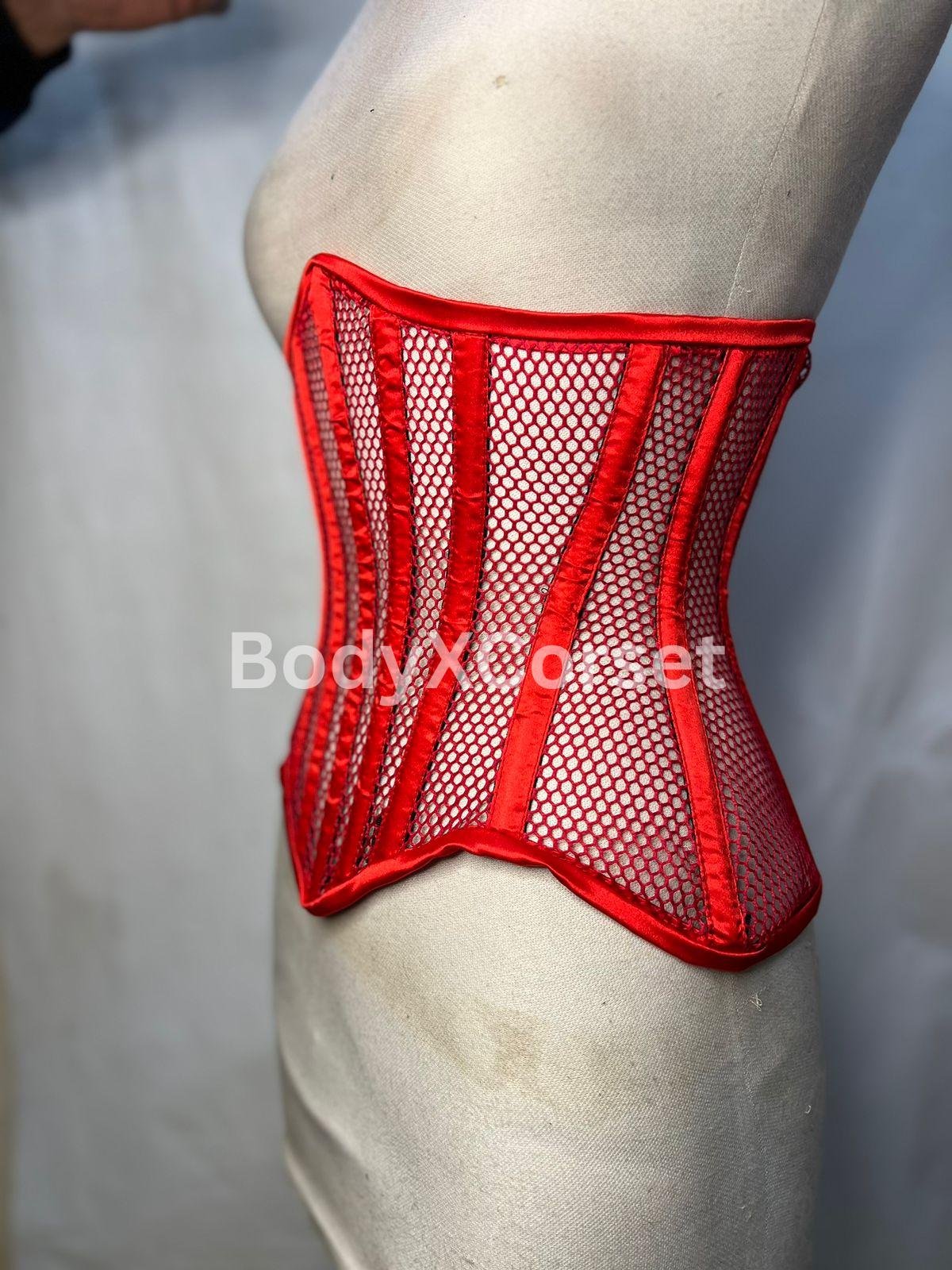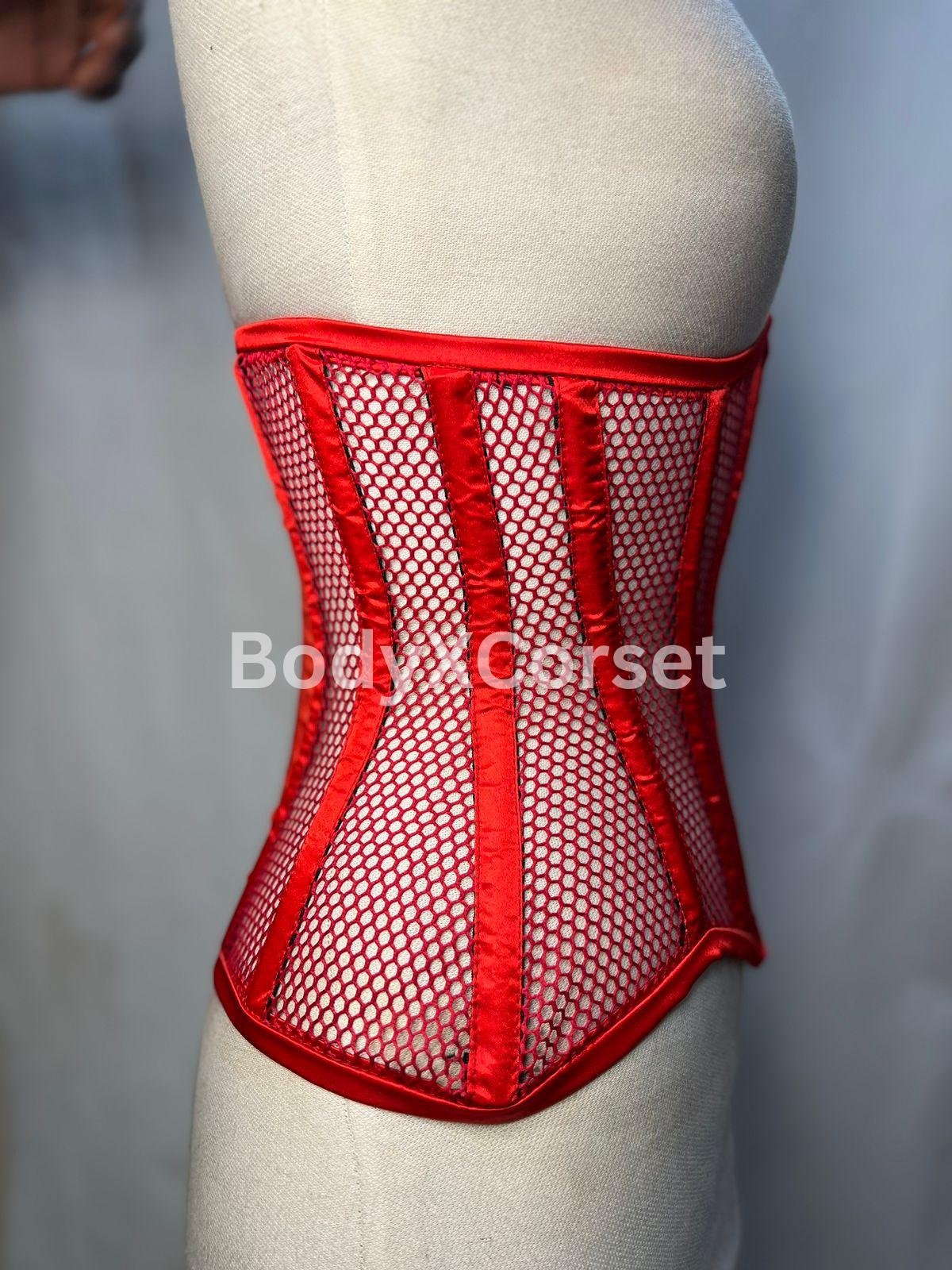 Red Fishnet Mesh Longline Waspie Underbust Corset – Sexy, Strong, and Striking