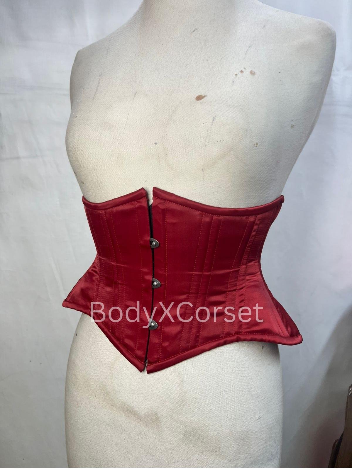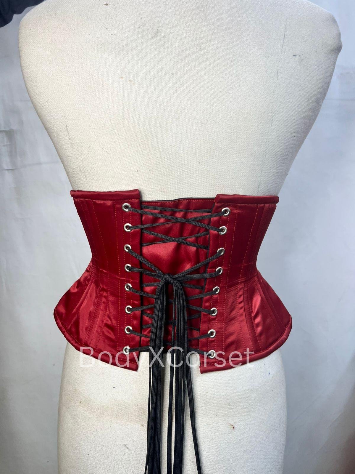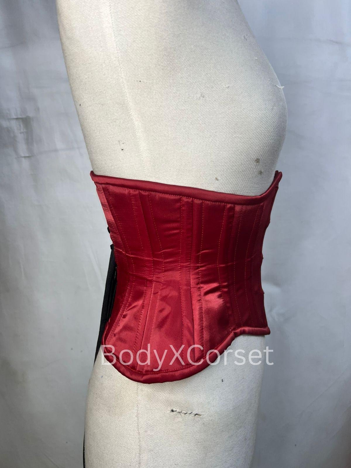 Red Satin Underbust Corset: Heavy Duty Victorian Waist Trainer