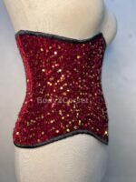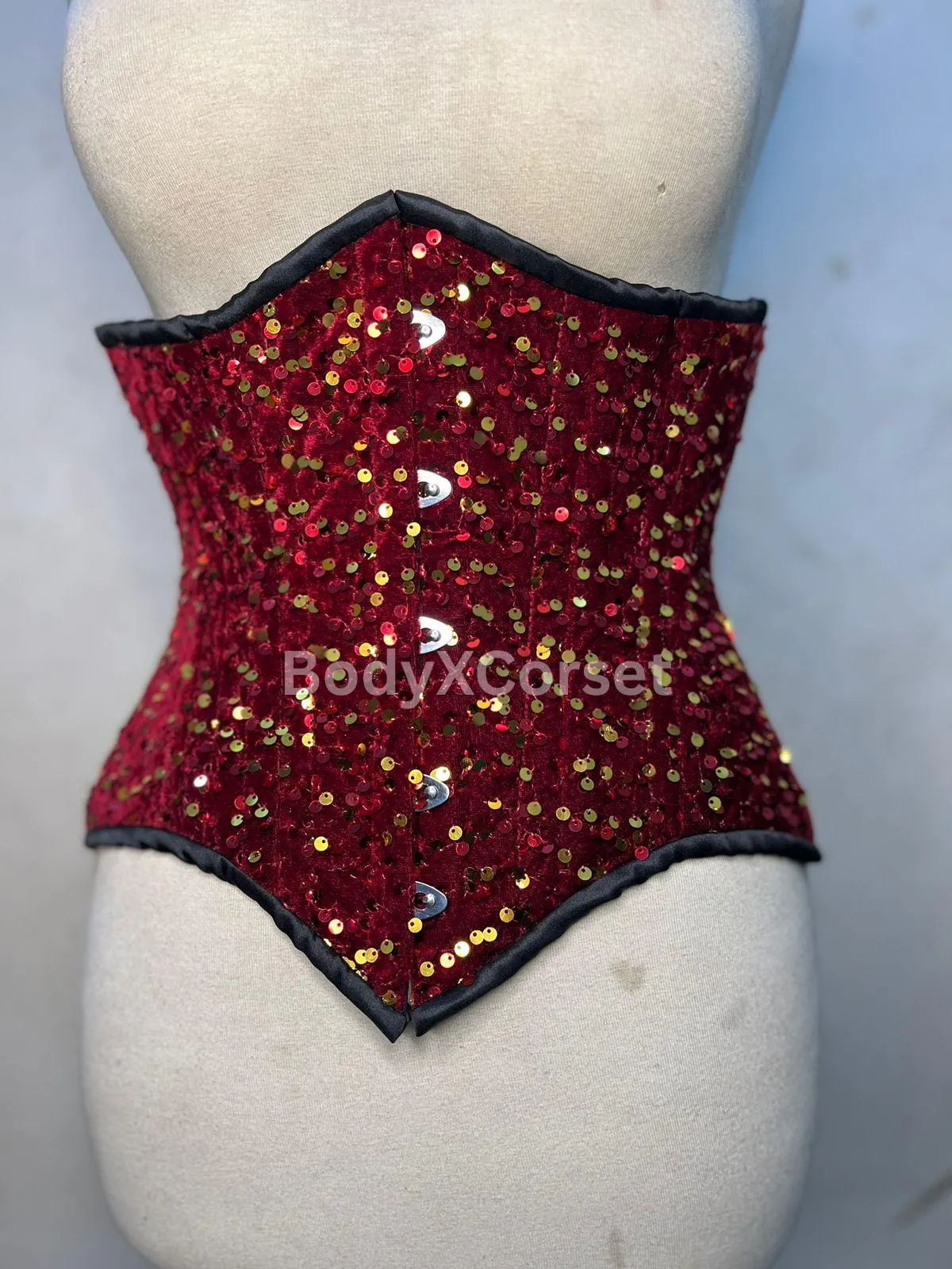 ✨ Red sequin underbust corset perfect for burlesque, cosplay, and gothic fashion