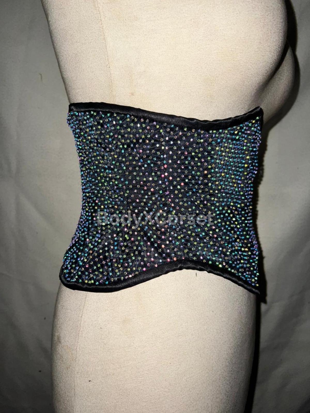 rhinestone corset, sparkle corset, black waist cincher, burlesque corset, gothic corset top, rave corset belt, lace up corset, underbust corset, shiny waist shaper, party corset top, glitter corset, stagewear corset, pole dance corset