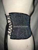 Make a dazzling statement with our Black Rhinestone Waist Trainer Corset, where bold sparkle meets elegant shaping. This glamorous underbust corset features a figure-enhancing silhouette adorned with hundreds of reflective rhinestones, designed to catch the light and attention at every angle. Perfect for festivals, gothic fashion, burlesque outfits, rave looks, or even daring streetwear—this corset elevates your style and shapes your waist all in one.
