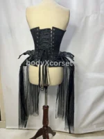The corset is steel-boned (not plastic) for firm shaping and support, ideal for both waist training and fashion wear. The front includes a traditional silver metal busk closure for ease of wear, while the back features a heavy-duty lace-up design that allows you to adjust the tightness to your comfort. This lacing system not only enhances the fit but also adds a striking visual element to the back view.