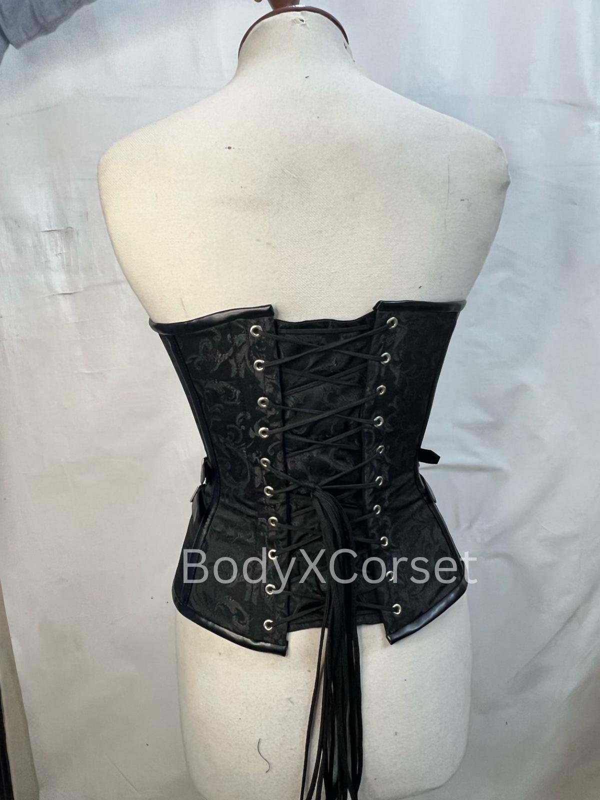 Structured with 14 steel bones (12 spiral, 2 flat) encased in faux leather channels for reinforced shaping and a dramatic cinch. Perfect for tight lacing or styled layering.