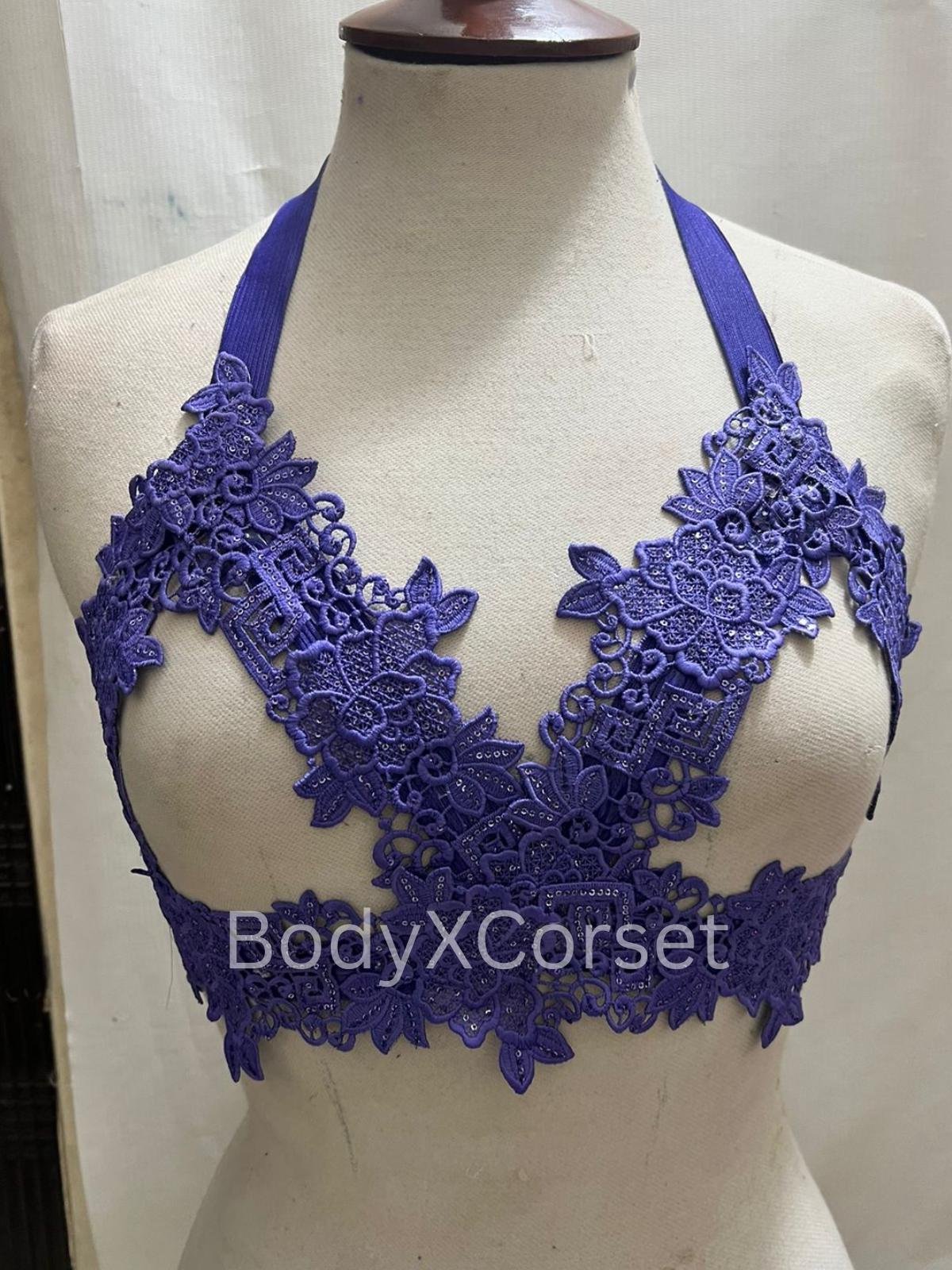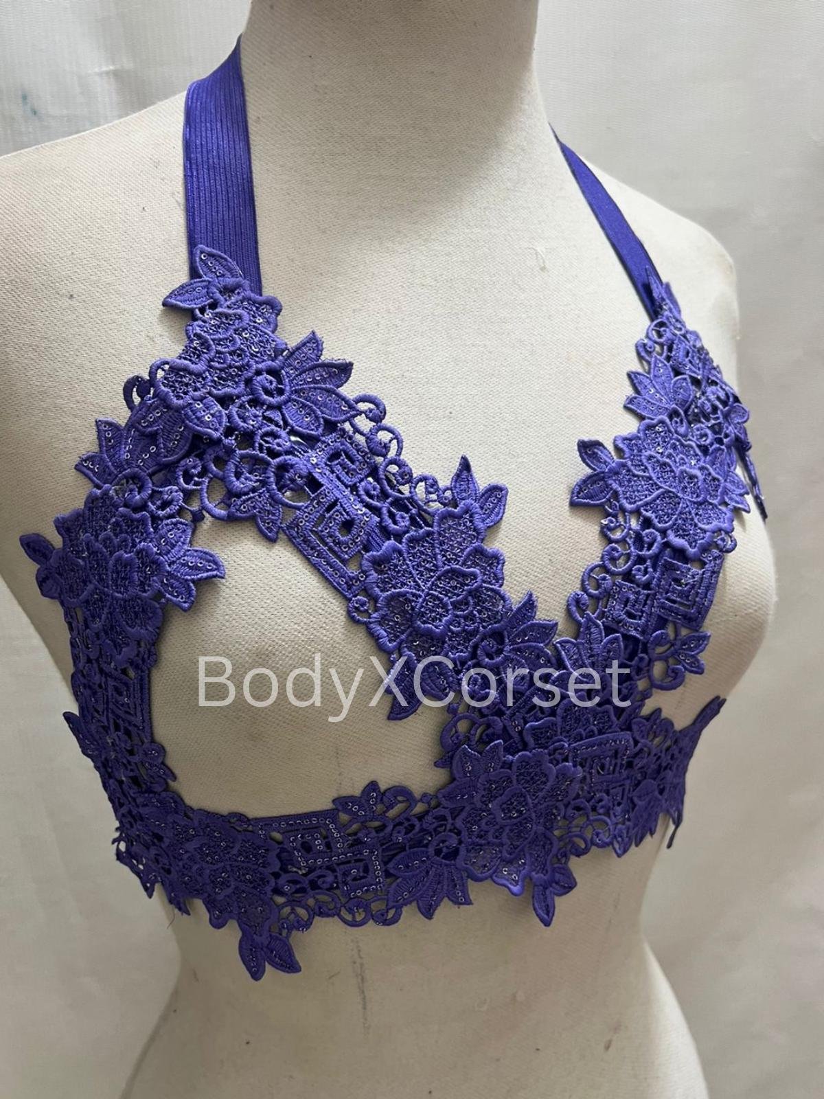 Strappy Lace Halter Bralette Top Gothic Fashion Crop Top Sheer Backless Lingerie Top Steampunk Burlesque Harness Bra