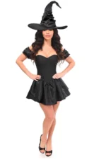 Step into a realm of timeless witchcraft and refined allure with the Top Drawer Black Witch Halloween Corset Dress Costume, where classic Halloween fantasy meets sophisticated corsetry. Ideal for mesmerizing at costume parties, themed weddings, or fall festivals, this two-piece set—featuring a fully steel-boned corset dress and a ruched witch hat—delivers a complete, head-to-toe transformation. Designed for those who adore blending vintage charm with modern comfort, this witch corset dress costume sculpts your silhouette while allowing effortless movement, ensuring you command attention without sacrificing style. Whether you’re a seasoned cosplayer or dipping your toes into enchanted attire, this ensemble promises to weave magic into every moment.