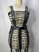 gothic leather harness, bondage dress, cosplay harness outfit, fetish lingerie, women’s leather cage dress, bdsm harness costume, ribcage body belt, gothic suspender corset, rave fashion accessory, edgy festival wear, leather lingerie set, dominatrix cosplay, sexy strappy dress, adjustable body cage, clubwear bondage outfit