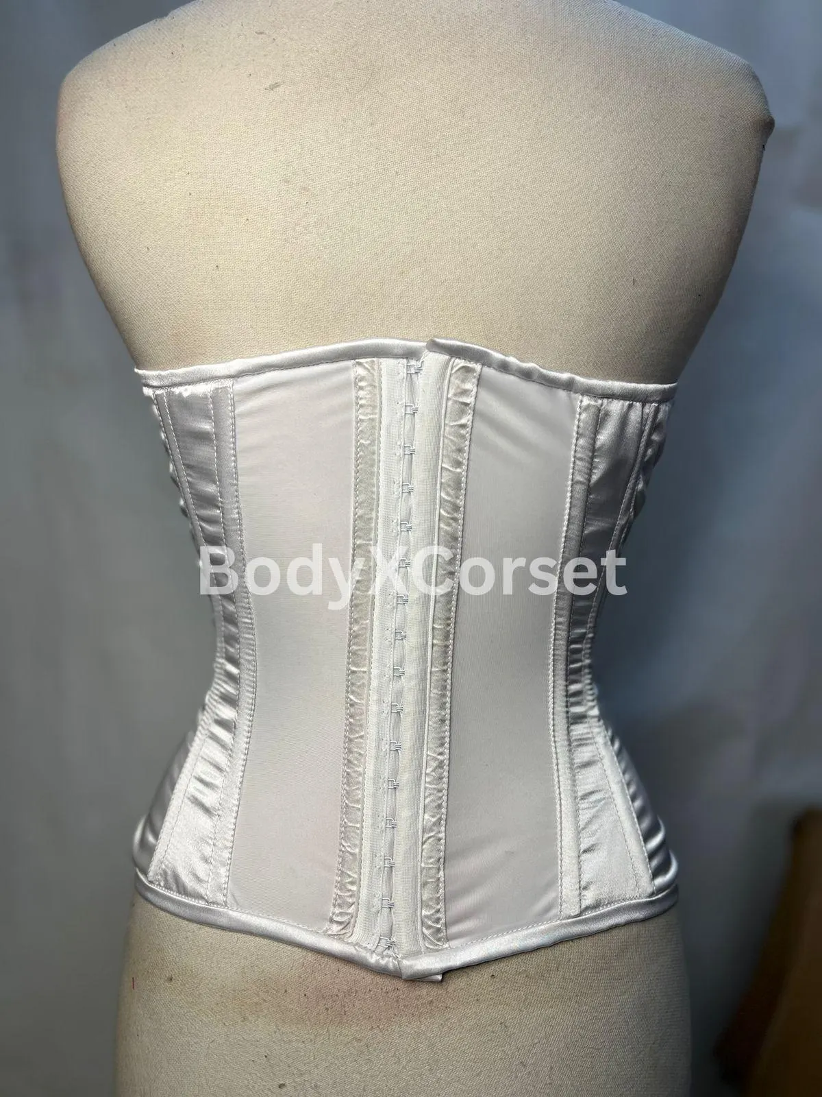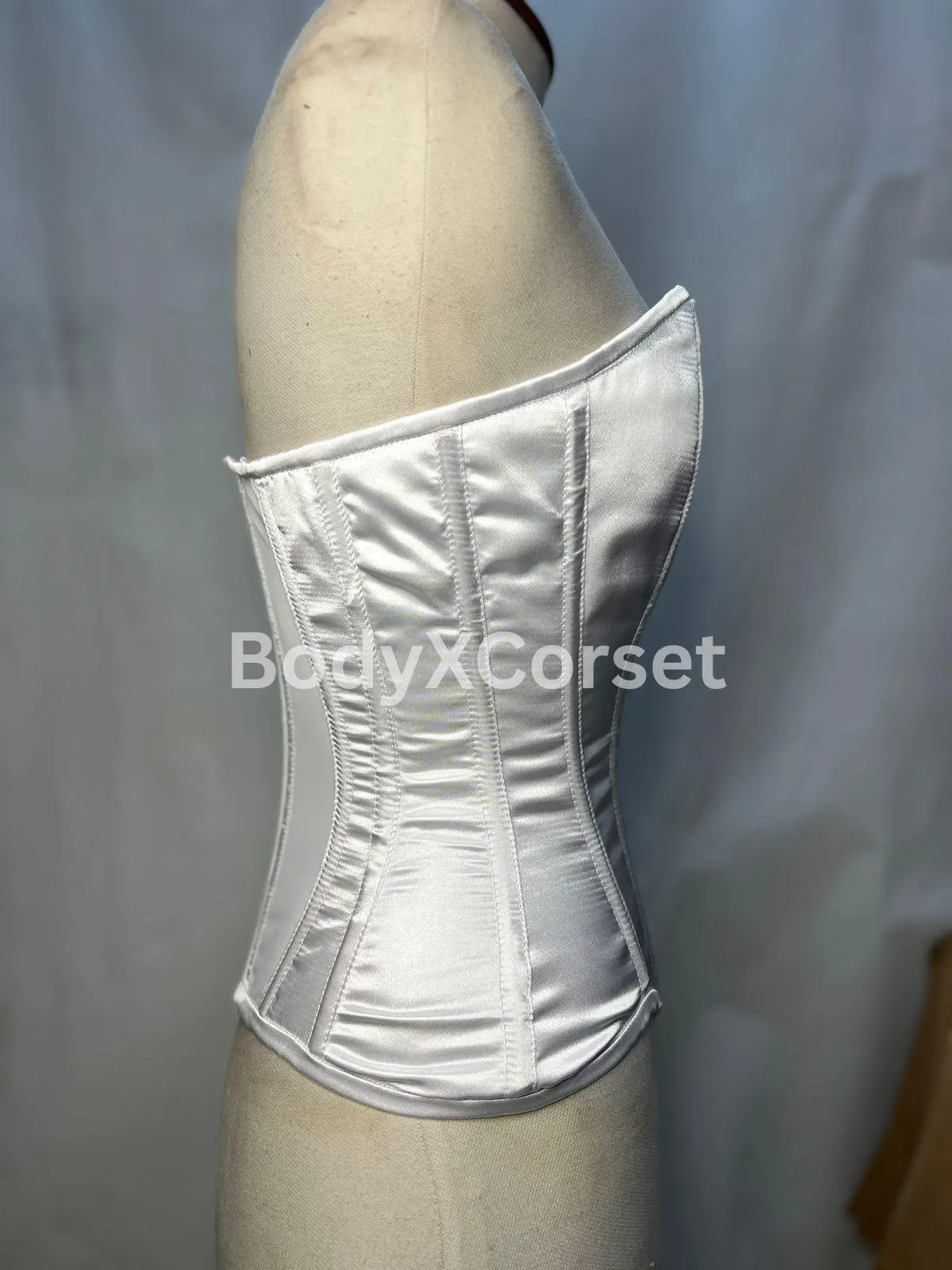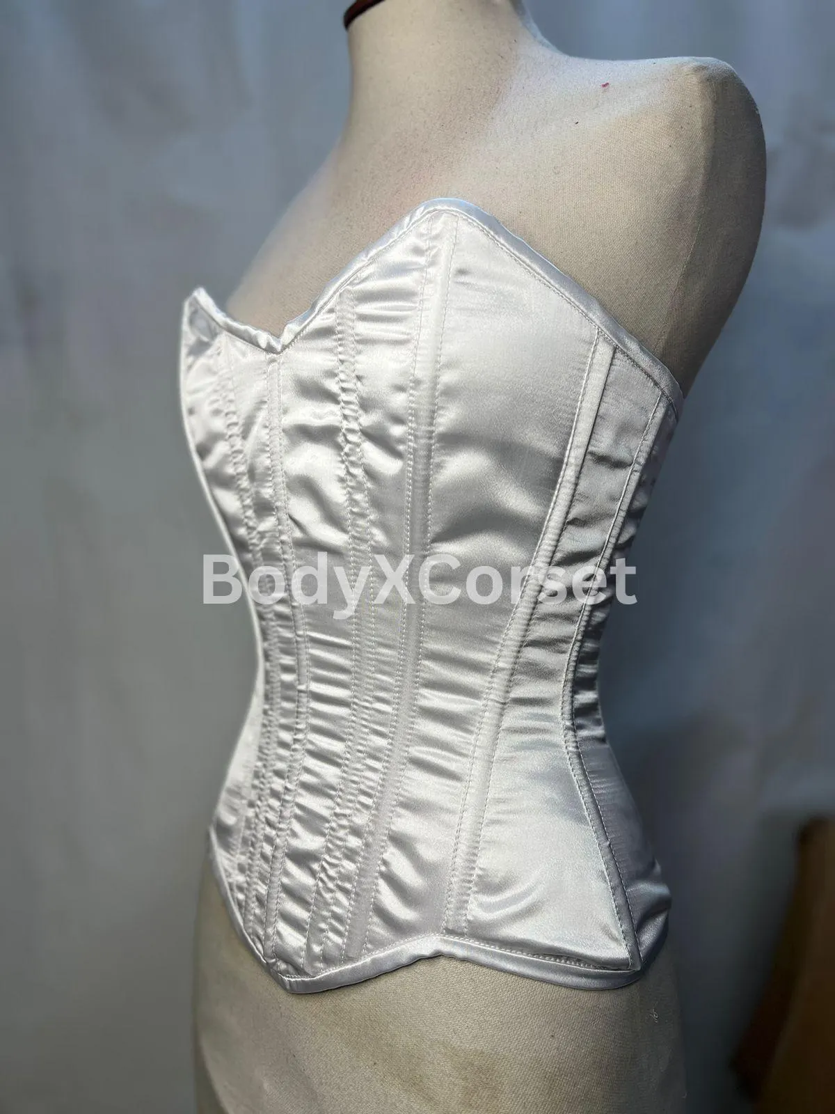 White Satin Long Torso Overbust Corset | Curvy Corset for Waist Training | Bridal Corset Top | Steel Boned Bustier | Plus Size Lingerie