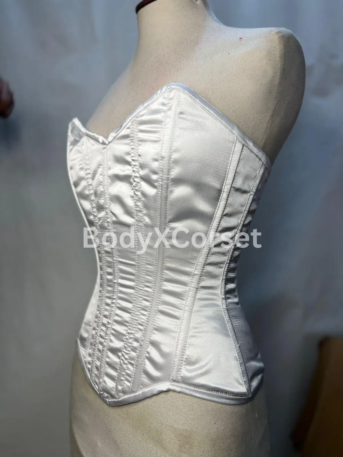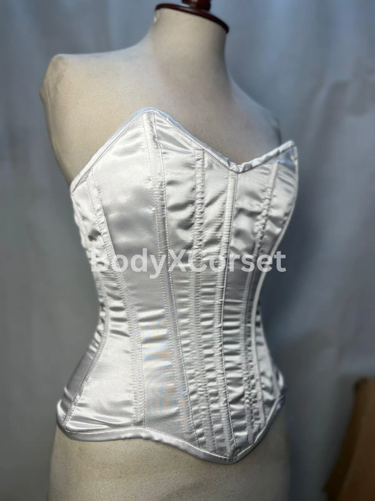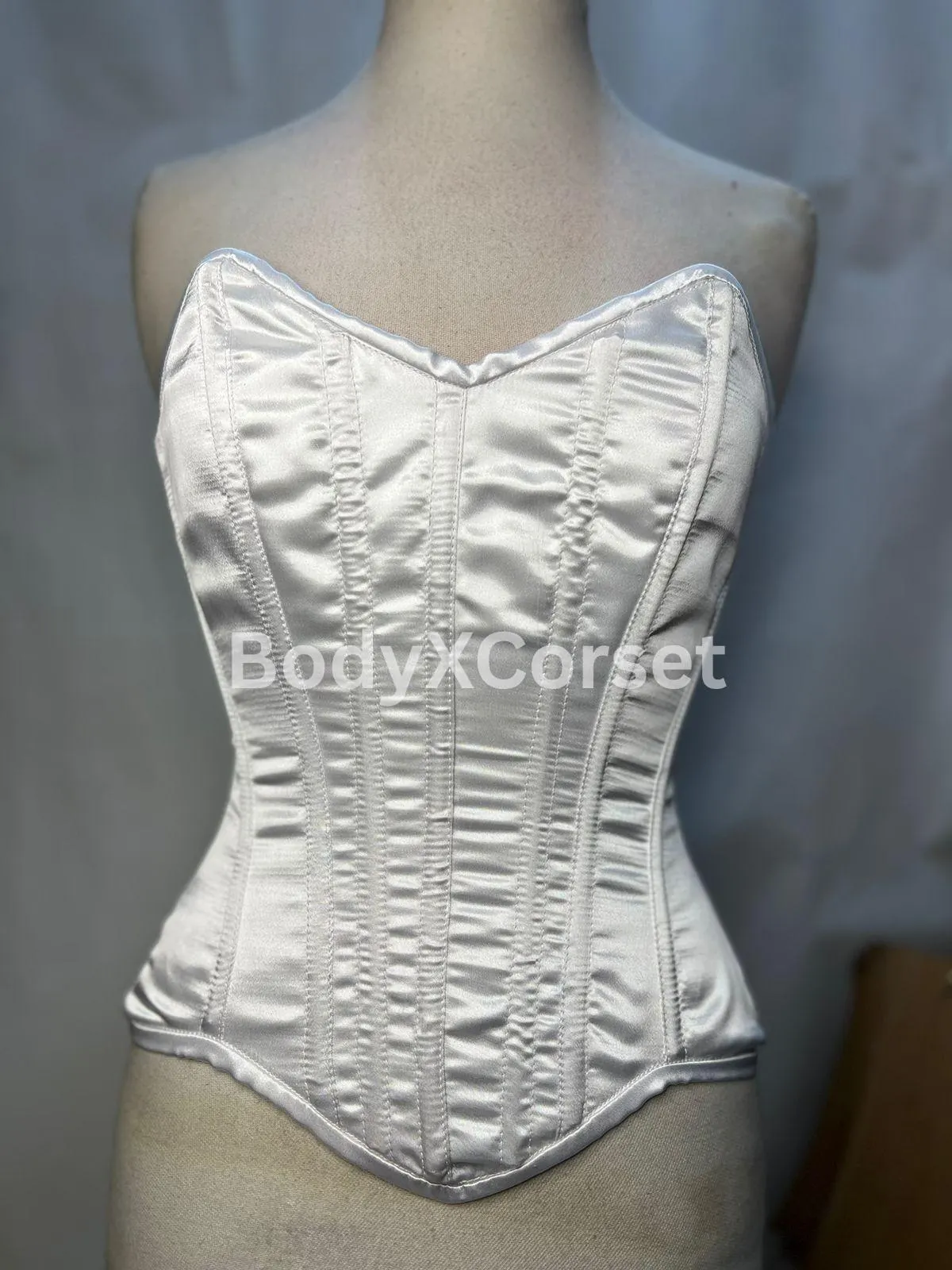 White Satin Long Torso Overbust Corset | Curvy Corset for Waist Training | Bridal Corset Top | Steel Boned Bustier | Plus Size Lingerie