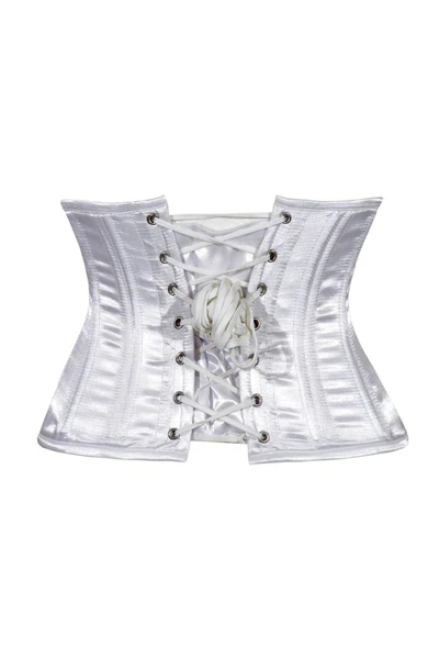 White Satin Mini Cincher Underbust Half Corset Waist Cincher Busk Closure