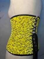 Be the first to review “Yellow Sequin Corset: Steel Boned Burlesque Rave Top”