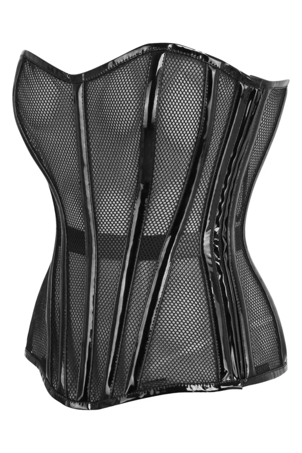 Gothic Black Fishnet w/Patent Steel Boned Overbust Corset Top