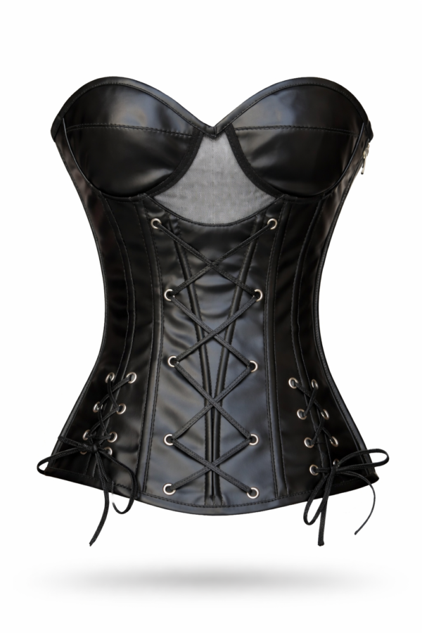 Black gothic Leather Steel Boned Overbust Corset for Women curvycorset.com