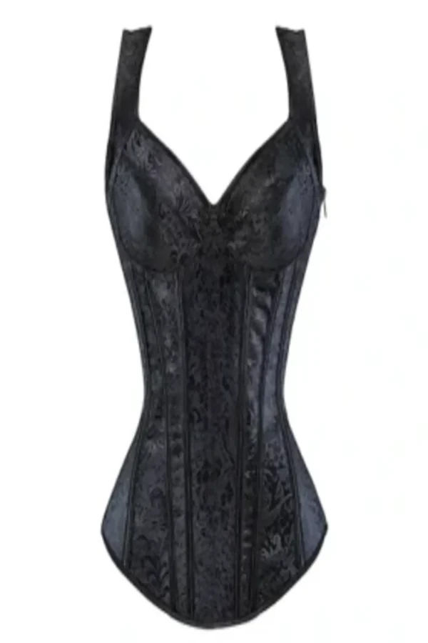 Black Corset in Gothic Style With Brocade Print